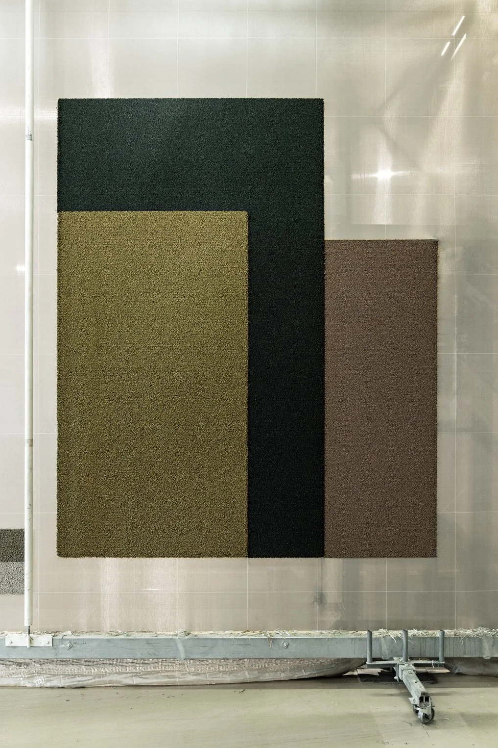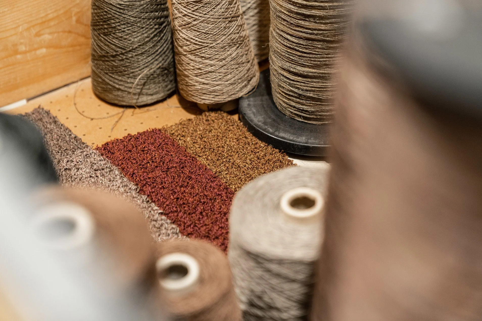 The wool gives depth, warmth, and volume. The linen adds a discrete and vibrant note to the overall texture. Tegel is composed of three design variants Corner, Side, and Centre each displaying three color areas in separate (but related) spatial configurations affecting the perception of the surrounding. The design of Tegel reflects a marriage between past, present, and future – paying homage to the knowledge and culture at Kasthall while incorporating the naturally weathered variations of the historic brick buildings at Kasthall’s headquarters and factory. Each design variant comes in seven different colorways.