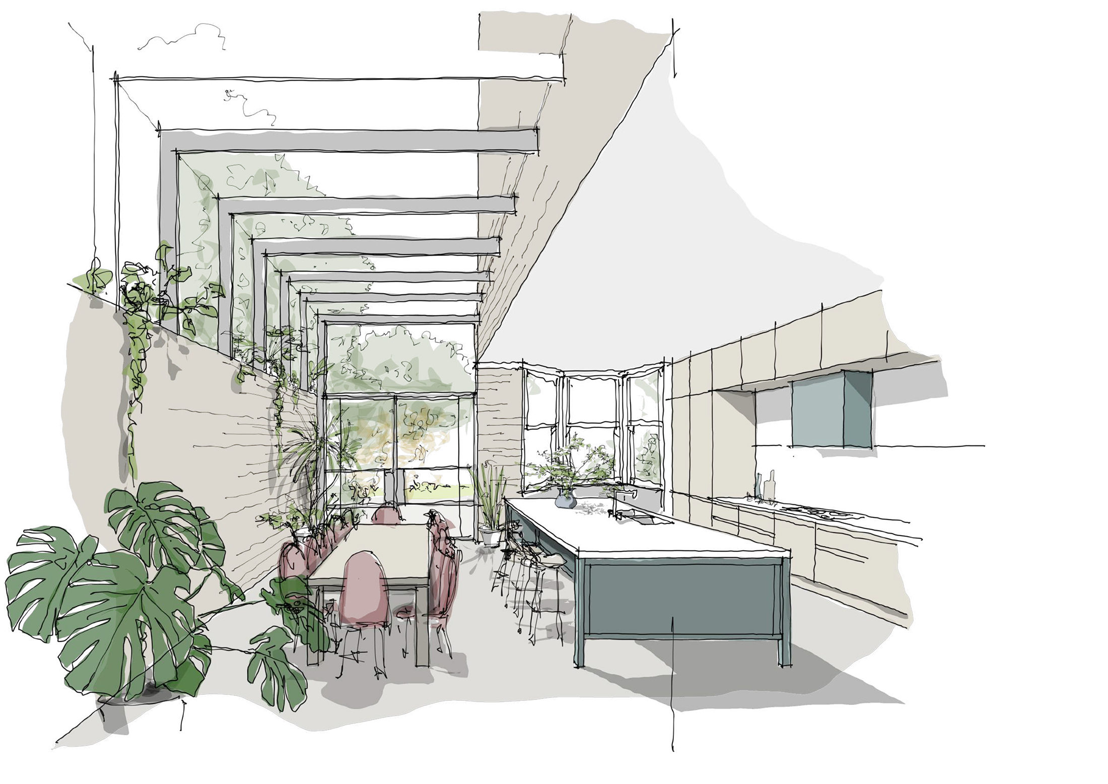 At hūs, we listen first. Every project begins with an understanding of our clients — their needs, their rhythms, their sense of home. From these conversations, we sketch — quietly exploring proportion, light, and material until the essence of a place begins to reveal itself.